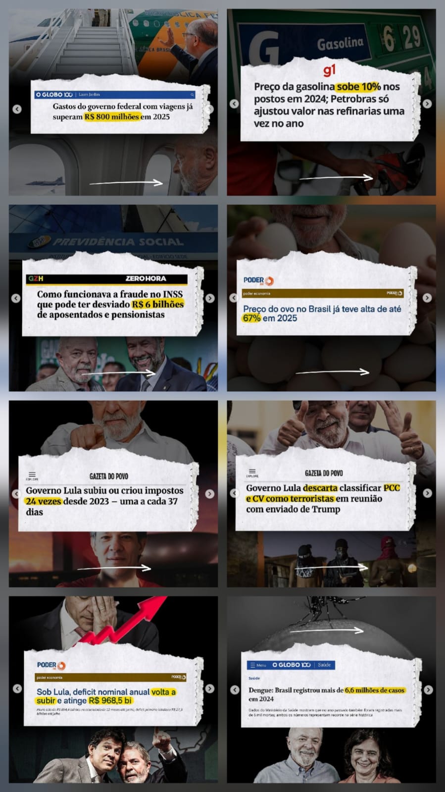 "Essa postagem, mesmo vinda de Flávio Bolsonaro, dessa vez não é tão exagerada. É óbvio que não deixa de ser tendenciosa como todas as postagens vindas da família Bolsonaro e em especial de Flávio Bolsonaro. Mas ele (ou a assessoria dele) foi muito inteligente na seleção das manchetes. Com exceção da alta do preço dos ovos o restante das críticas ao Governo Lula estão condizentes e não são exageradas. Quanto a alta dos preços dos ovos foi uma conjunção de fatores: aumento dos custos de insumos, queda de produção por motivos climáticos, aumento de demanda; fatos esses que não têm relação com o Governo Lula. Mas essa postagem só é "mais do mesmo" vindo da família Bolsonaro." (G4, 44 anos, funcionário público estadual, PR)